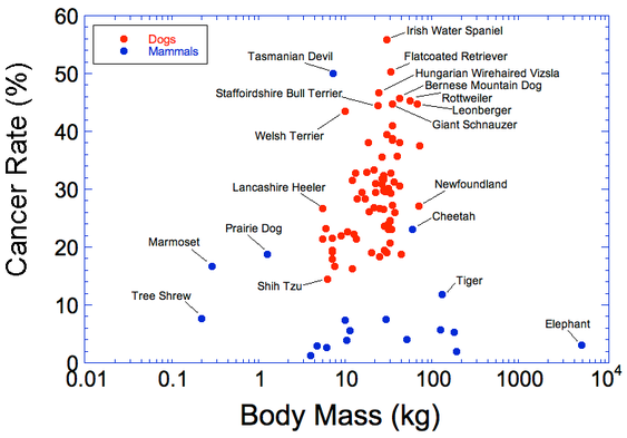 might be some unknown but fundamental process that is driving the risk of cancer in dogs.