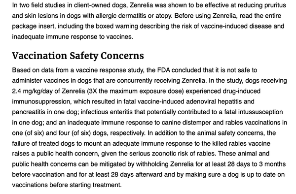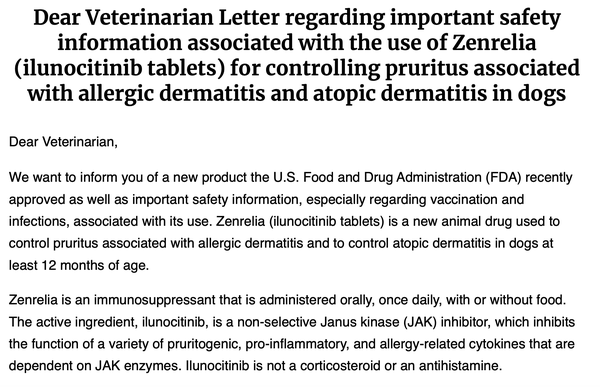 Apoquel is far worse than steroids as far as the toxic effects on the immune system. Now we have Zenrelia, which is even worse. It destroys EVERY kinase.