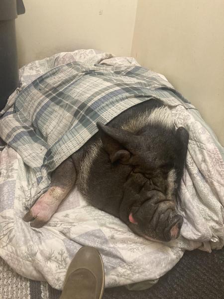 During the day, I learned that Sunny, a pig I'd often noted for his enormous size, was scheduled to be euthanized the following day because he was collapsing and unable to walk. I immediately decided that Sunny would be the next pig to treat. Despite his