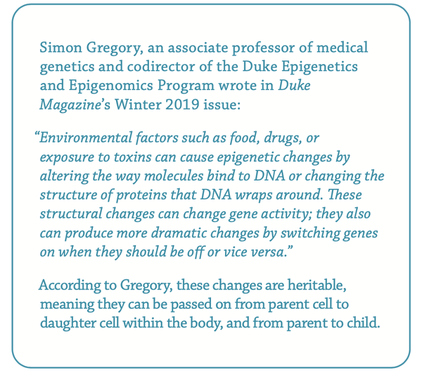 the the expression of the gene. The term 'epigenetics' literally means "above the genes'.