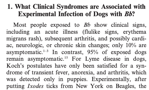 2. Experts in Lyme Disease state that dogs don't get Lyme Disease [like people do]. Dr. Meryl P Littman [and I knew her well] felt that dogs rarely got Lyme disease. A very rare but serious problem from a Lyme positive tick is Lyme Nephritis, which is an autoimmune disease of the kidney tubules [vaccination for Lyme would increase the predilection for this problem] That's why I recommend that any dog who has tested positive for Lyme Disease do a routine clean urine test